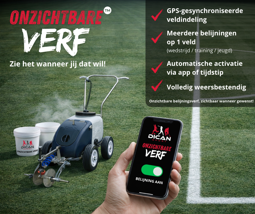 Maak jouw sportveld veelzijdiger dan ooit met onze innovatieve onzichtbare belijningsverf. Deze geavanceerde oplossing maakt het mogelijk om belijningen alleen zichtbaar te maken wanneer jij dat wilt – perfect voor clubs en accommodaties die meerdere sporten, trainingen of leeftijdsgroepen faciliteren op één veld. Dankzij GPS-gesynchroniseerde technologie worden lijnen uiterst nauwkeurig aangebracht en afgestemd op jouw specifieke veldindeling. Of het nu gaat om wedstrijden, trainingen of jeugdopstellingen: met één druk op de knop schakel je moeiteloos tussen verschillende belijningen. De verf is volledig weersbestendig en ontworpen voor intensief gebruik in alle omstandigheden. Via de gebruiksvriendelijke app stel je eenvoudig in wanneer de belijning zichtbaar moet zijn, automatisch of handmatig.