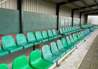 Afgelopen 6 februari hebben we bij vv WHS de tribune een upgrade mogen geven. Alle tribune stoelen werden vervangen door nieuwe groen/witte kuipstoeltjes. Samen met het klusteam hebben we de nieuwe kuipstoeltjes gemonteerd, maar we hebben ook gelijk het frame aangepakt zodat de tribune weer tientallen jaren mee kan gaan.